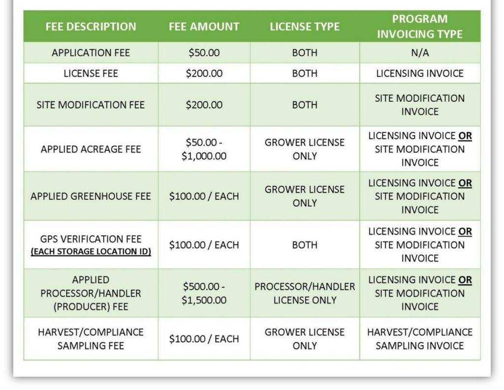 Each lot of hemp produced in the program costs $100/each at the time of harvest. Grower applicants should take this into account when developing business plans. A “lot” is defined as a grouping of hemp, containing the same variety throughout, in a contiguous area in a field, greenhouse, or grow location.